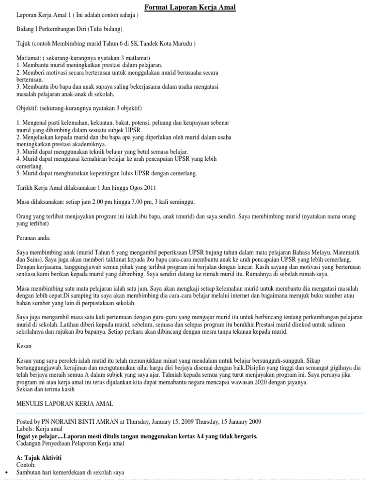 Contoh Laporan Kerja Amal Pendidikan Moral