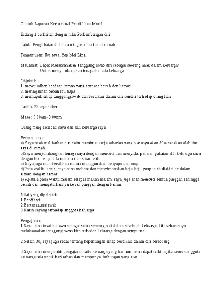 Contoh Laporan Kerja Amal Pendidikan Moral Perkembangan Diri